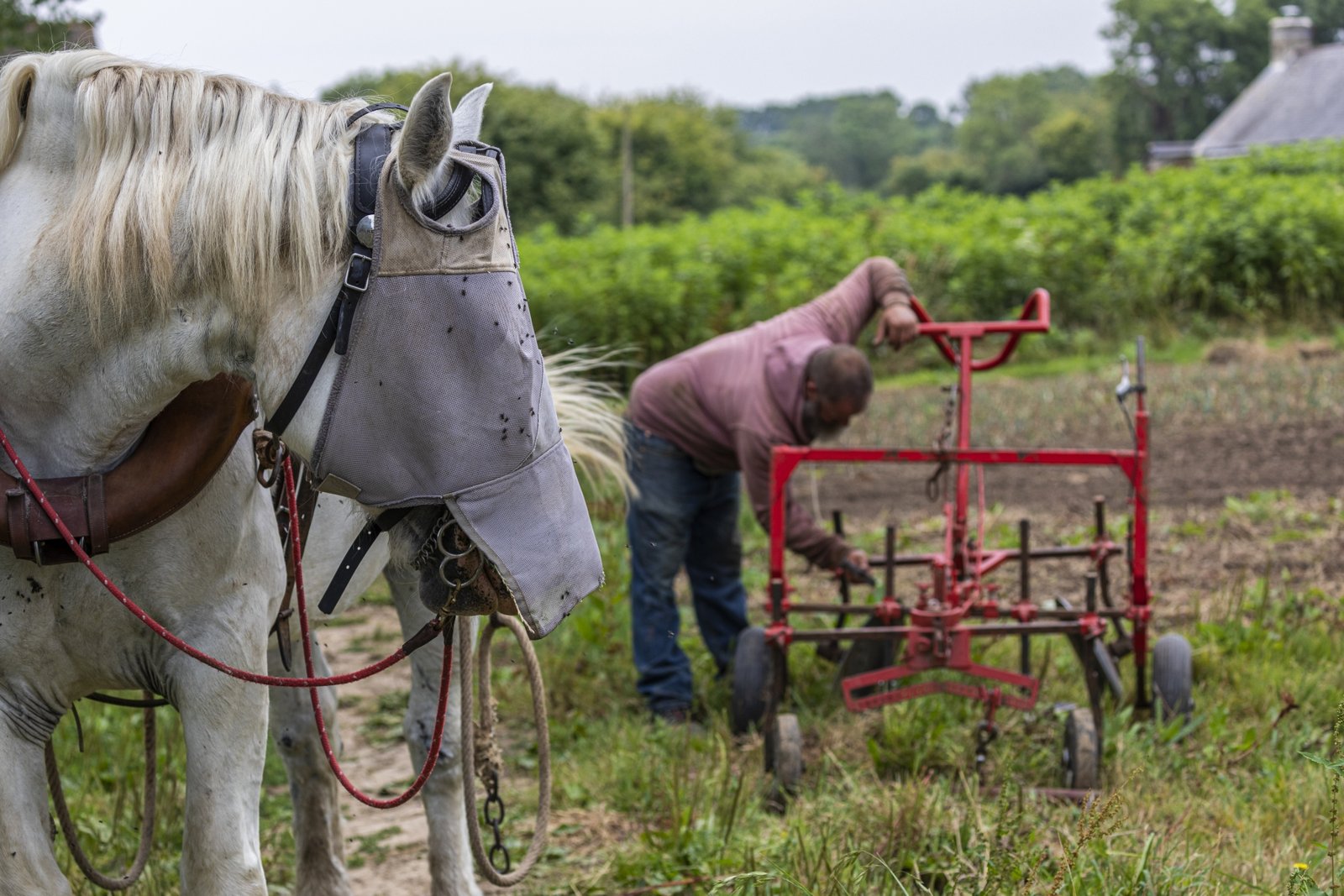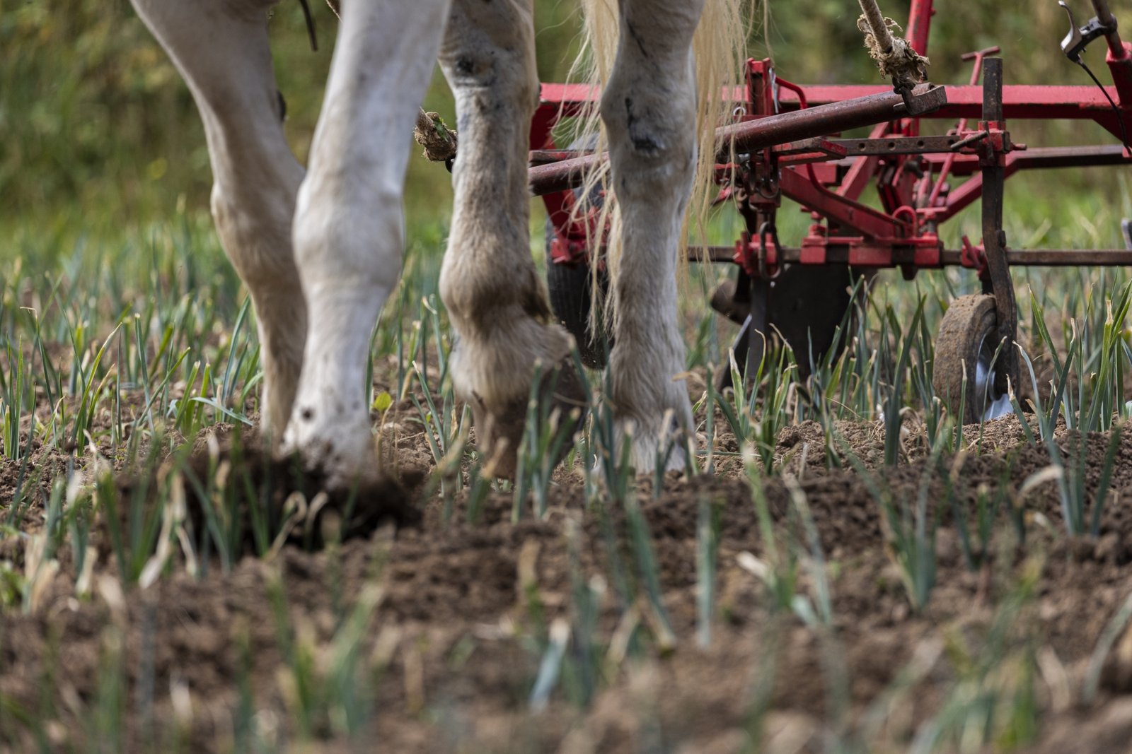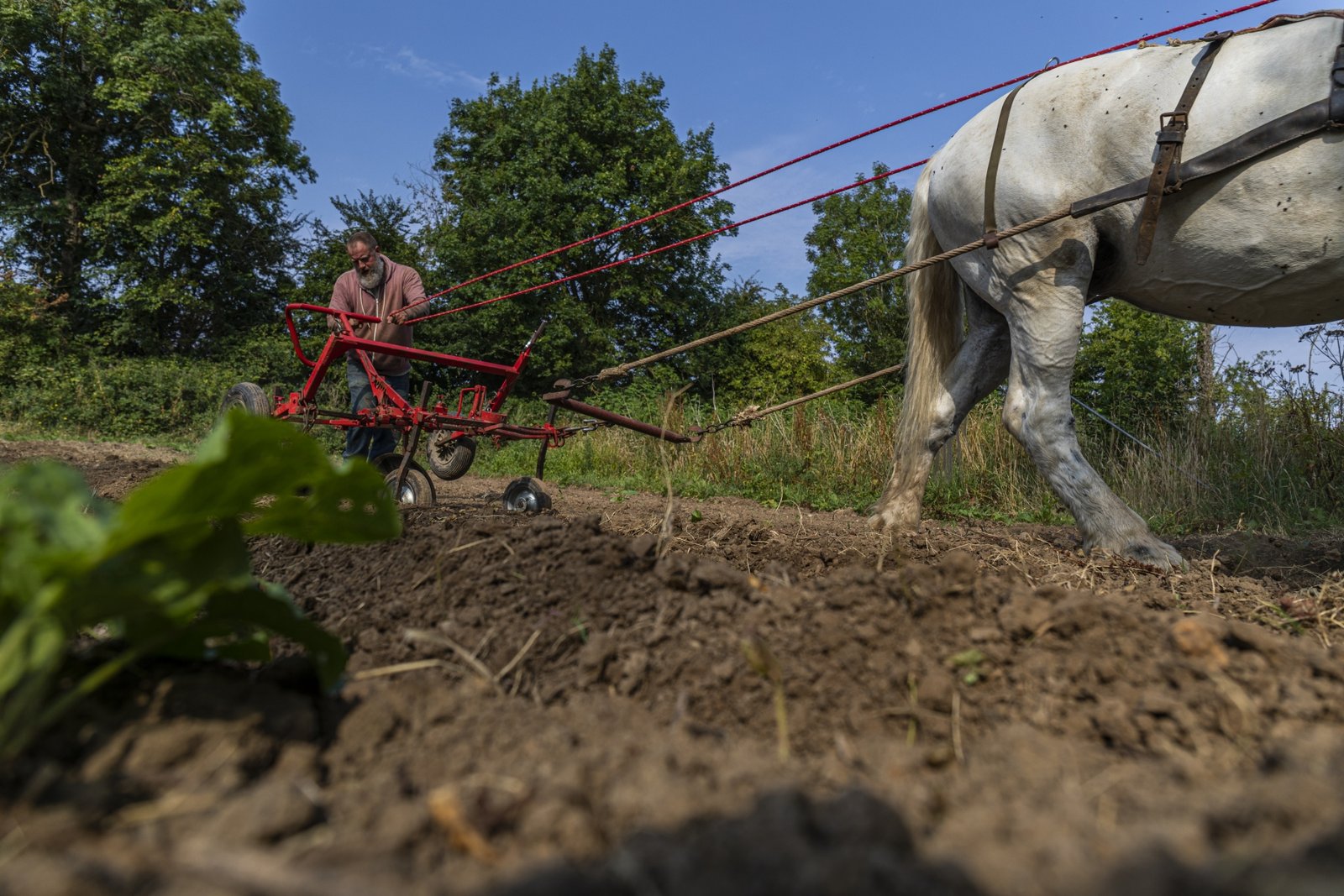 Depuis novembre 2020, Pierre entame une transition vers la traction animale. Il a choisi de travailler avec Victoire, une jument percheronne car elle est adaptée à sa surface de culture. Il a fait ce choix également pour s’affranchir au maximum du tracteur.