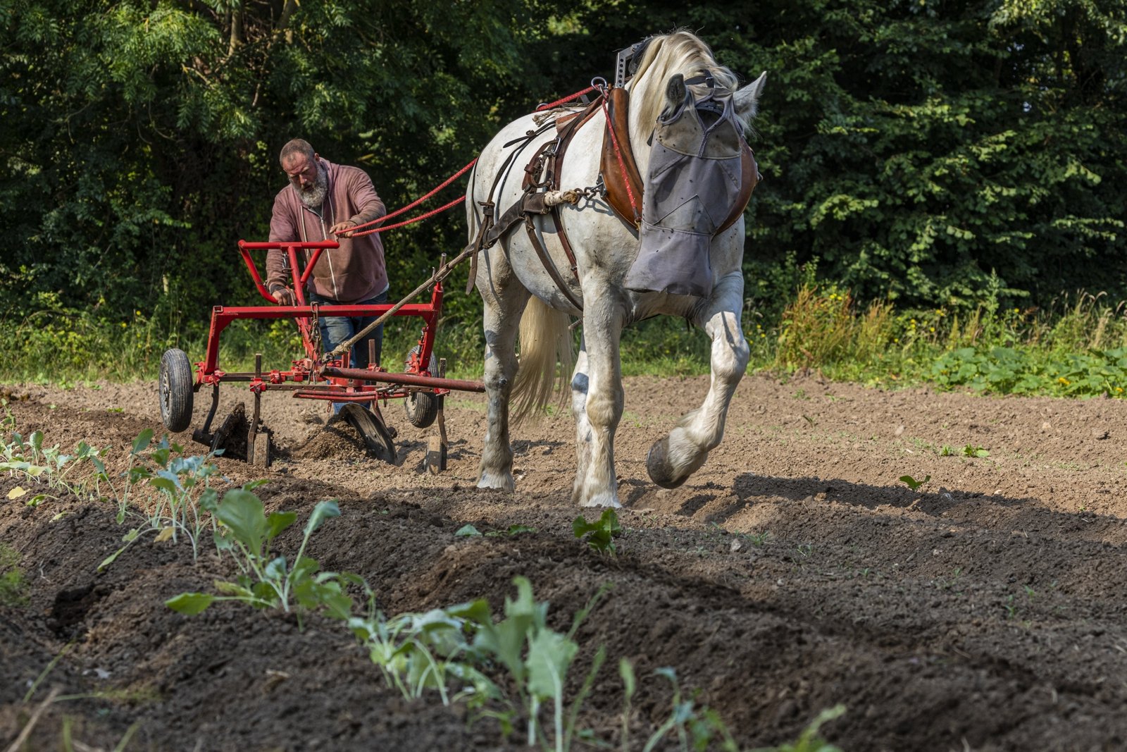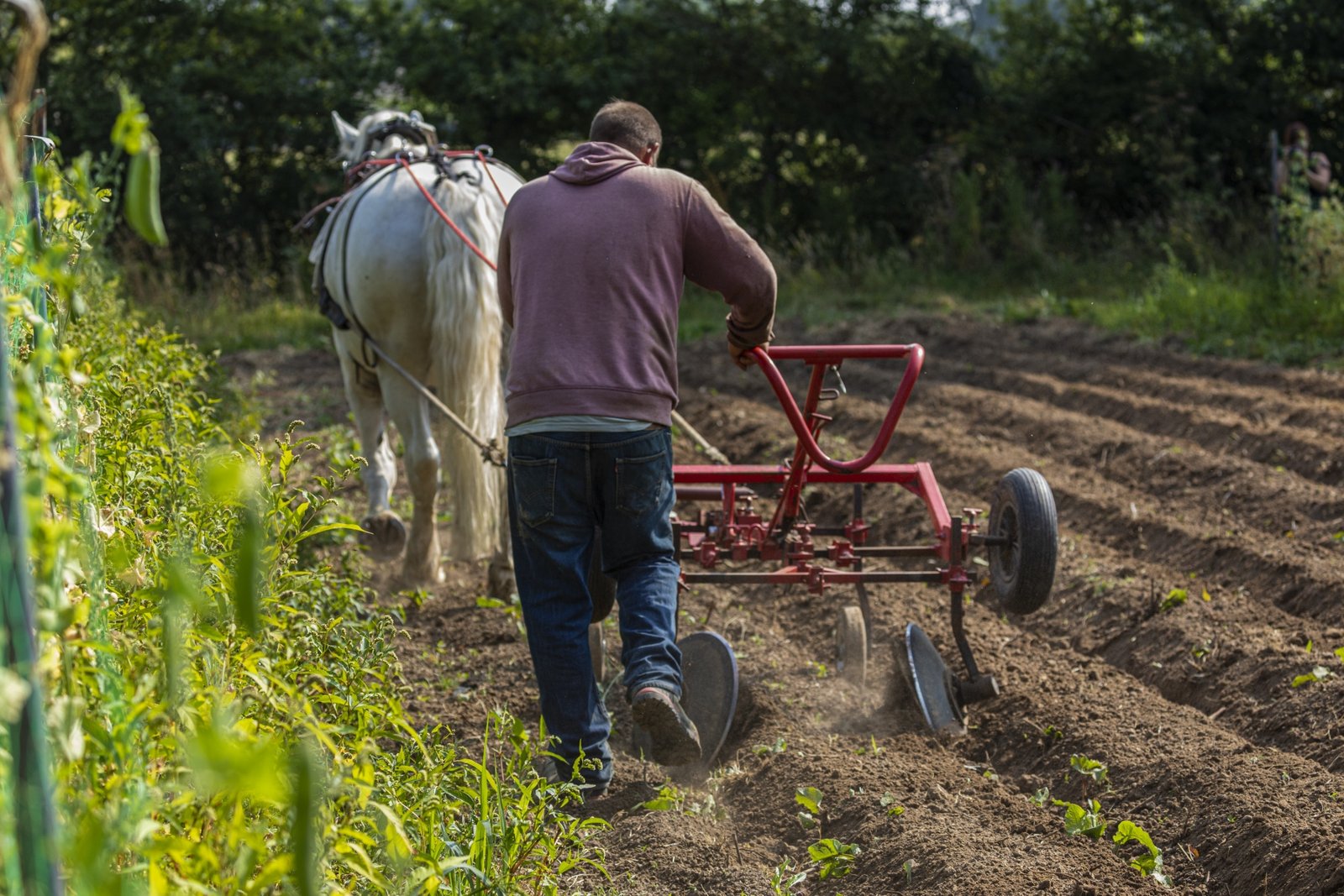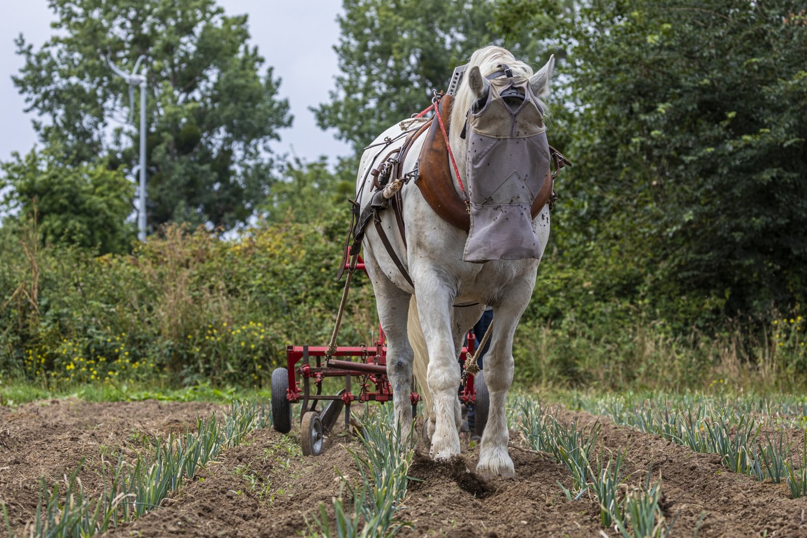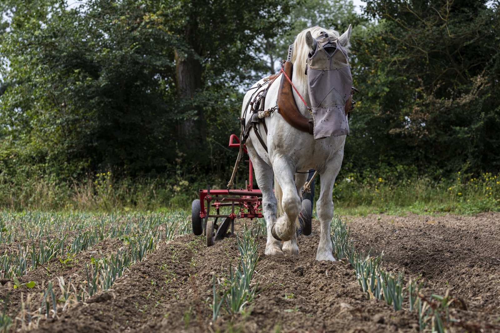 Depuis novembre 2020, Pierre entame une transition vers la traction animale. Il a choisi de travailler avec Victoire, une jument percheronne car elle est adaptée à sa surface de culture. Il a fait ce choix également pour s’affranchir au maximum du tracteur.